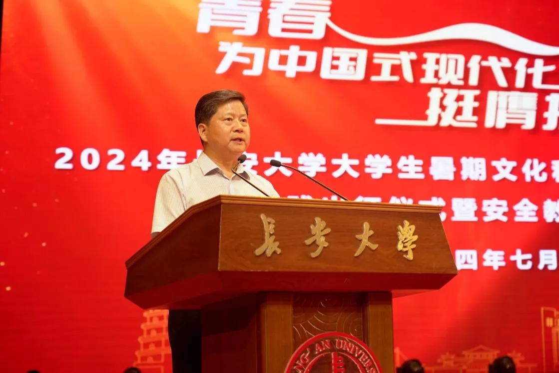 7月12日下午,学校2024年大学生暑期文化科技卫生“三下乡”社会实践出征仪式暨安全教育培训大会在北校区长安文化艺术中心大礼堂举行。会上,党委副书记黎开谊勉励同学们躬身实践、砥砺奋进,勇当科技创新、乡村振兴、绿色发展、社会服务、卫国戍边等各领域各方面的排头兵和生力军,以昂扬的姿态唱响逐梦复兴的时代之歌,用激扬的青春谱写中国式现代化建设的青春篇章。