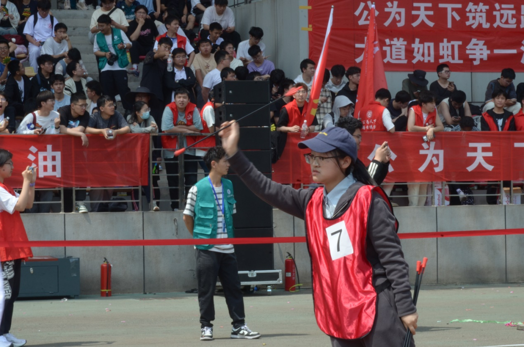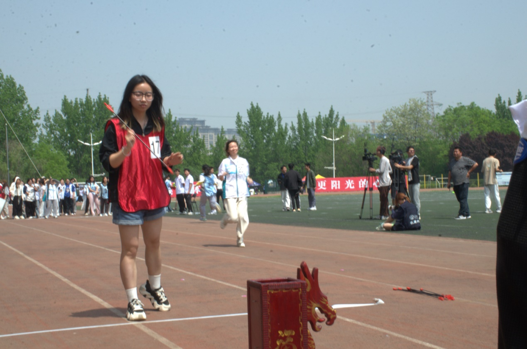 顶着炎炎烈日,地测学院党政领导来到比赛场地,参与了投壶比赛,运动员们拼尽全力,为学院而战,观众们加油助威,呐喊声响彻云霄。