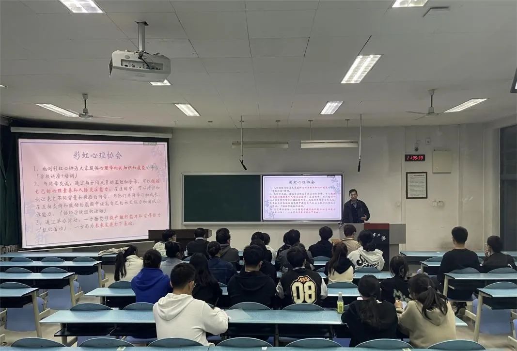 会议伊始,彩虹心理协会指导教师陈子毅首先对加入社团的新同学表示欢迎,然后对过去一年社团的活动举办情况和工作开展情况进行总结,向彩虹心理协会各个部门的同学明确职责分工并开展了相关培训,最后对未来一年社团开展的工作进行了展望。