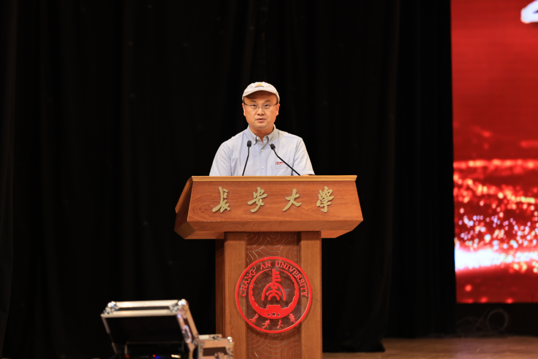 最后是企业代表丁健校友讲话他强调了学习英语的重要性,寄语同学们尽早适应大学生活,对自己负责,不断挑战自我,在新时代奋楫共进谱写辉煌篇章。