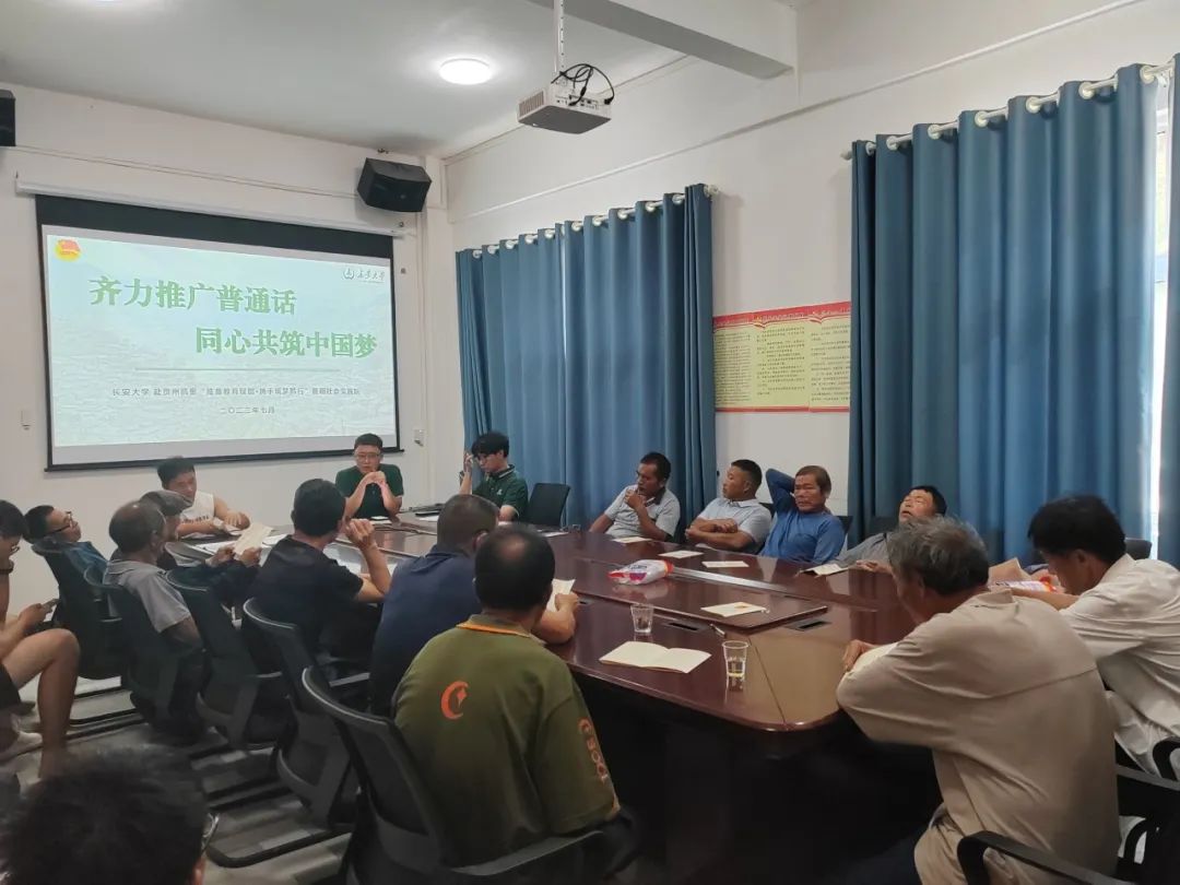 为推广普通话,助力乡村振兴战略实施,实践队员采用问卷、访谈等形式,深入南江村寨开展普通话普及程度调研,并于7月25日在村委会开展了普通话推广讲座。实践队分为若干个小组开展调研,主动为文化程度薄弱的村民口述问卷题目,扎实客观做好记录。座谈会上,村民们就普通话学习过程、普通话学习的重要性等方面进行了热烈的讨论。他们纷纷表示更加深刻地认识到了学习普通话的重要性,同时村民们也提出了一些切实可行的建议和方案,给实践队调研工作以启发。