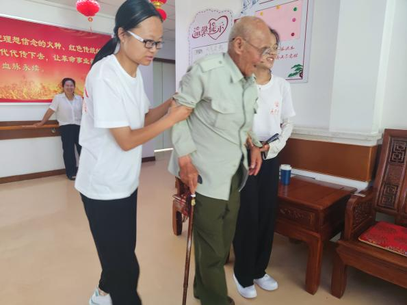 图为八一养老院的爷爷和实践队队员