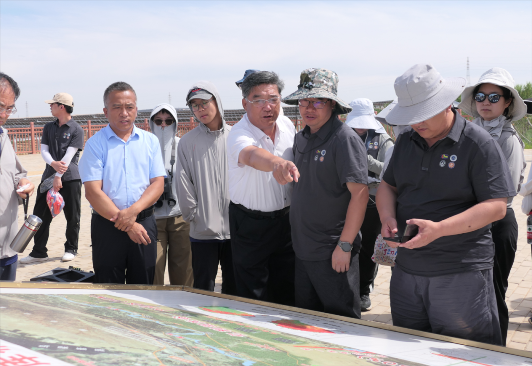 科考队的第二站来到了库布其沙峰绿谷进行考察。此地在30多年前,沙峰高度最高可达160米且植被覆盖度不足3%。而在运用风向数据和微创水汽法植树等技术,系统化和规划治理之后,如今的平均高度境地了60%以上,植被覆盖度从不足3%增长到65%,成果显著。