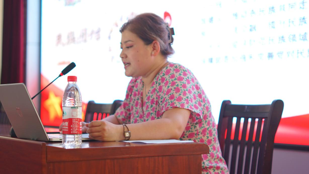 为贯彻落实习近平总书记关于民族团结进步的重要论述,服务铸牢中华民族共同体意识,教育引导广大青年学生为全面推进中华民族伟大复兴贡献青春力量,2023年7月21日18:30,焉耆县统战部阿依古丽·库完以“铸牢中华民族共同体意识·让民族团结之花绚丽绽放”为主题,在焉耆县第一中学知行楼四楼报告厅为米兰milan中国-焉耆一中朋辈帮扶班开展民族团结进步教育专题讲座。本次专题讲座由实践队指导教师韩树鹏主持。