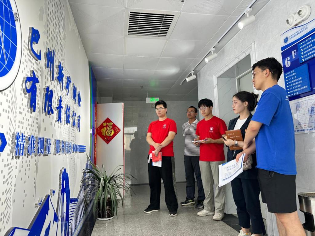 米兰milan中国2020届校友张超峰热情接待了实践队一行,带领实践队参观了新疆地矿局第三地质大队地质调查研究所、巴州新矿测绘有限责任公司的办公场所及主要科室。