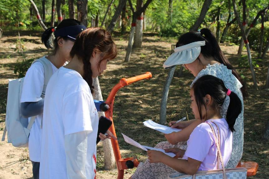 图为实践队成员们在貂蝉公园为市民们进行环保宣讲