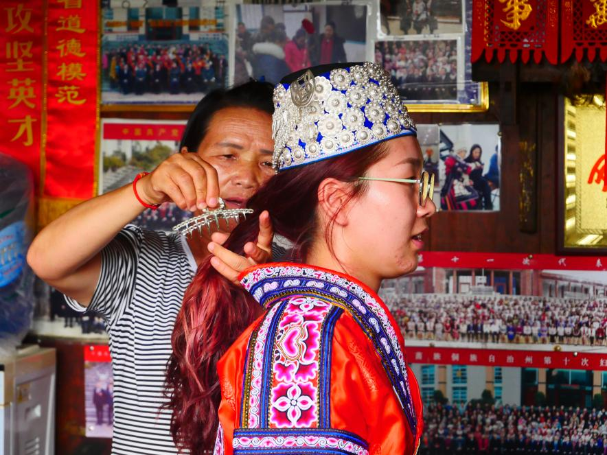 团队成员试穿苗族服饰