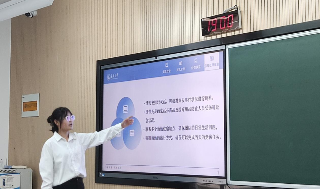 随后各支队伍就自己暑期社会实践项目的活动主题、活动形式、宣传渠道、项目计划以及活动意义等方面展开答辩并向三位评委老师展示了前期调研结果和自己实践活动的可行性。参与答辩的暑期实践队伍由来自地测学院的同学们自发组建,他们的暑期社会实践围绕党史学习教育、乡村振兴促进、学科专业实习实践、青年志愿服务等主题展开。
