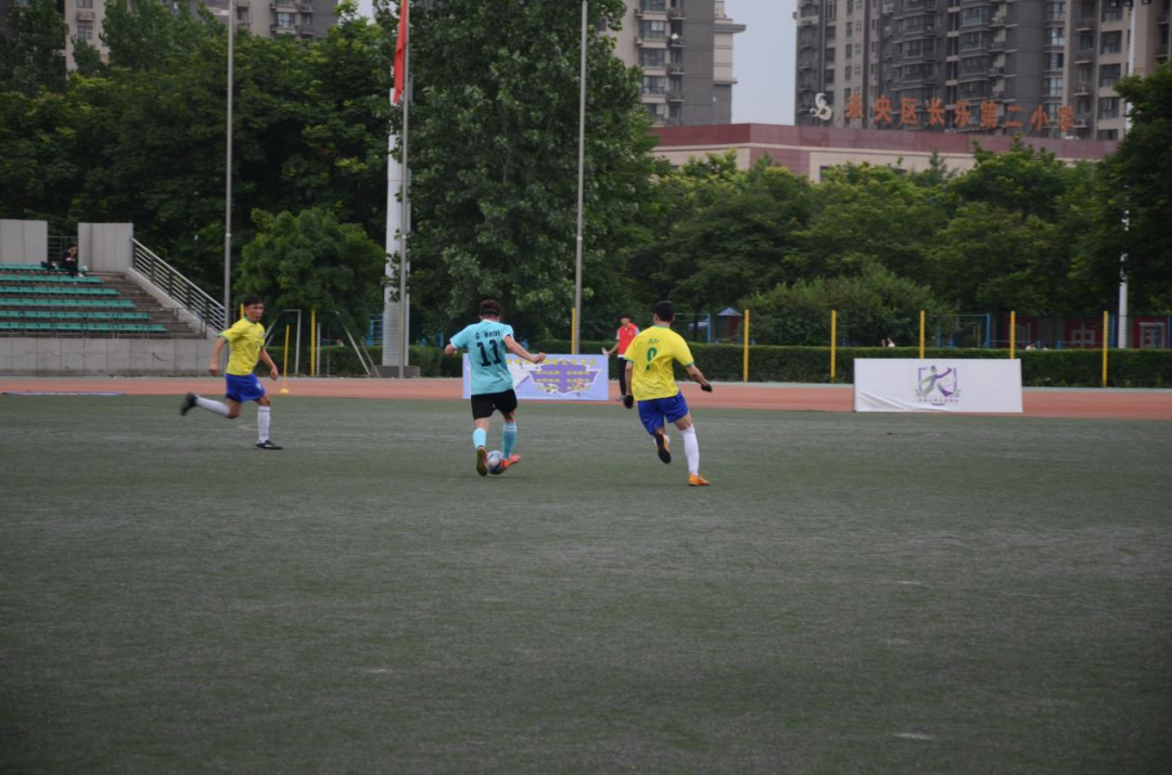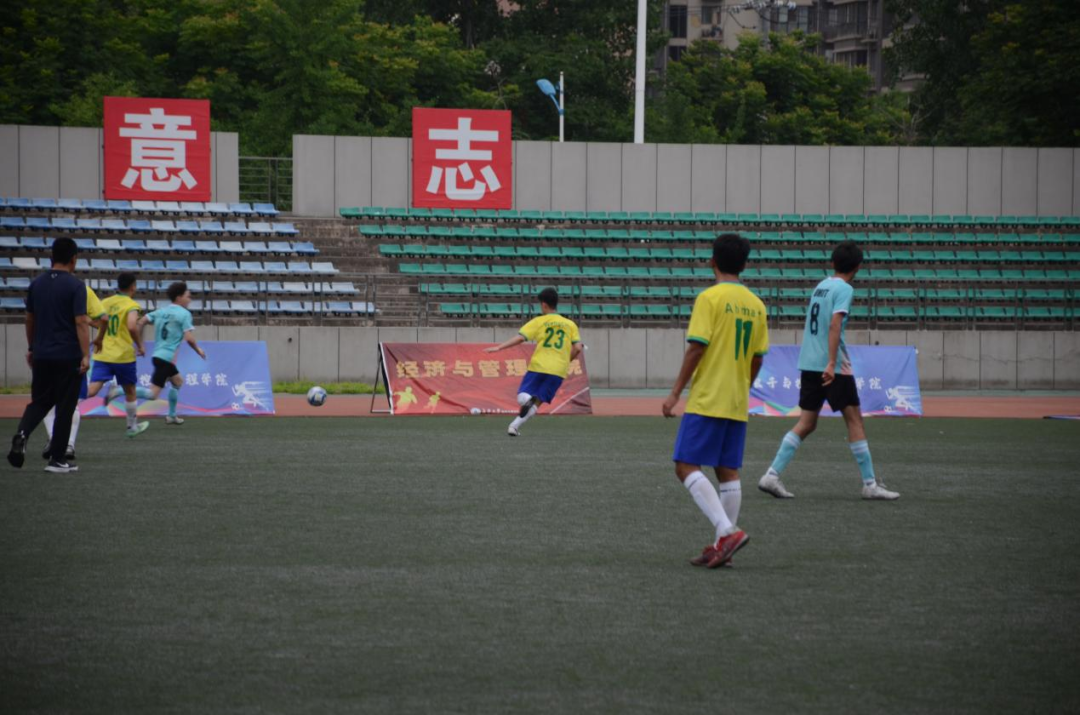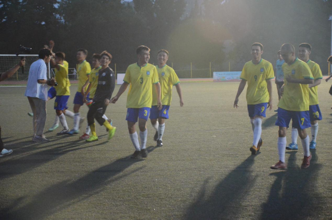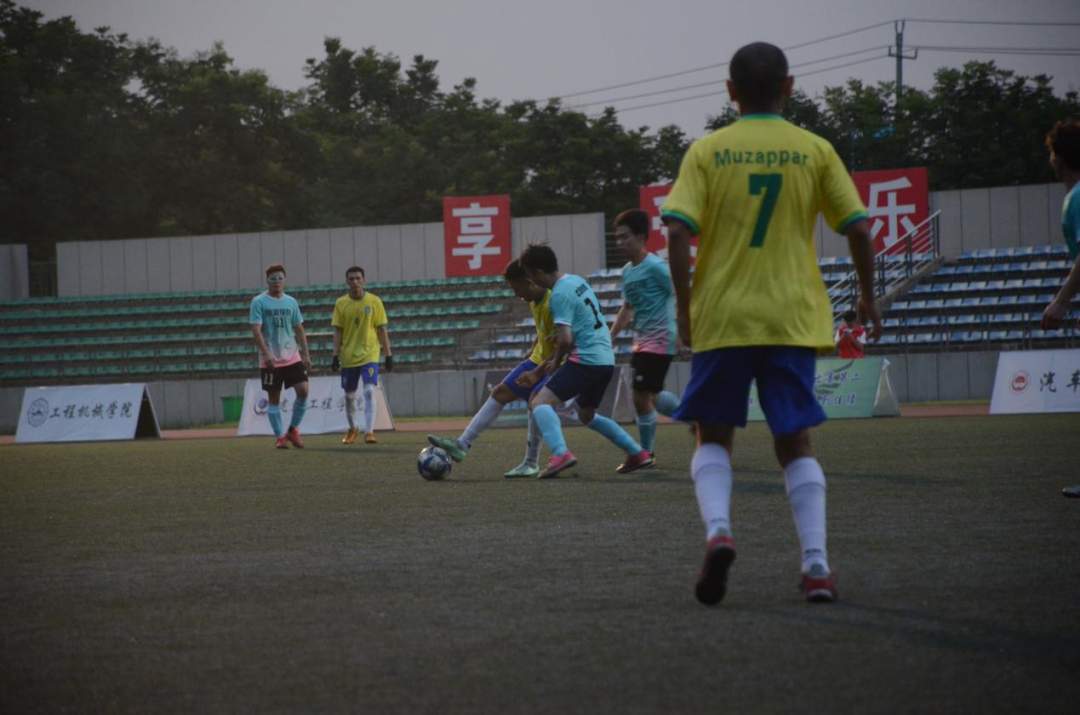 下半场换边再战。双方都丝毫不敢松懈,每一次得到进攻、防守都引起场边观众欢呼。随后,地测学院22号球员抓住机会攻入一球,扩大了比分优势。资源学院的球员们也不曾放弃,一直在寻破门的机会,在经过多次尝试后,终于取得进球,将场上比分改写为2:1。之后的时间,双方均未再取得进球。主裁判哨响,地测学院以2:1的比分战胜资源学院,获得本次足球联赛冠军。