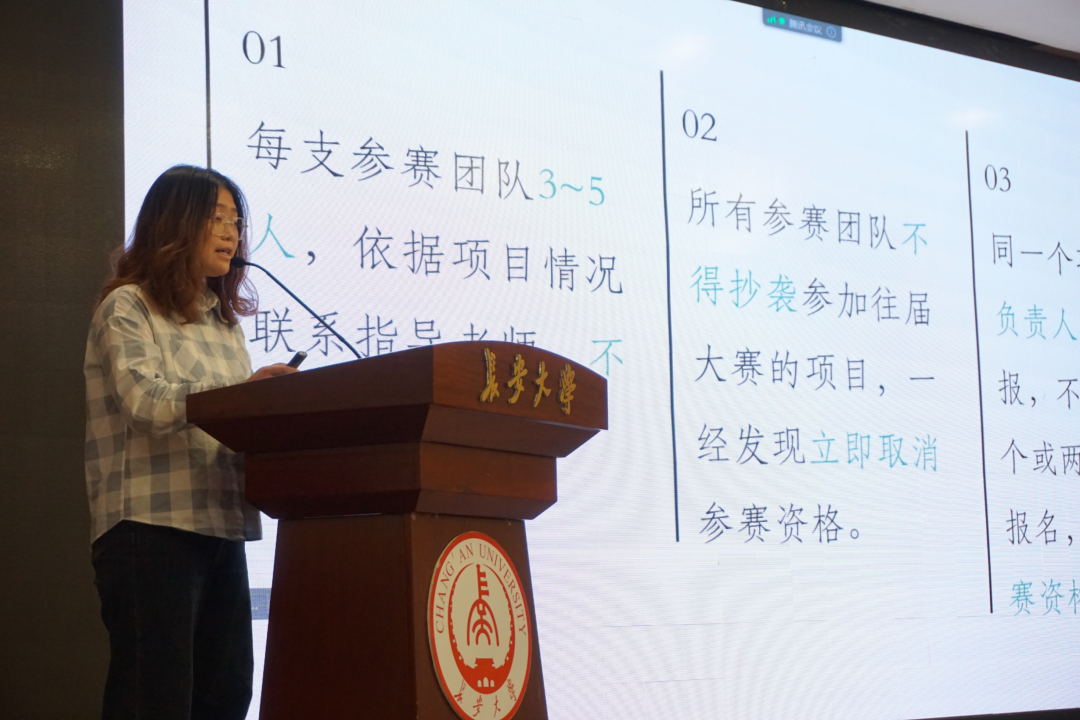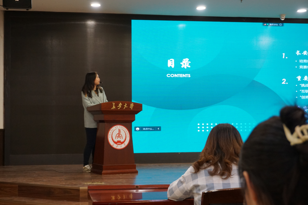 程文清就赛程赛制向同学们展开宣讲,从参赛要求、五小创作品要求(即小创意、小发明、小调研、小论文、微创业)、大赛流程、奖项设置和其他说明五个方面对五小创赛事进行了详细的介绍,并提醒同学们一些重要的时间节点。