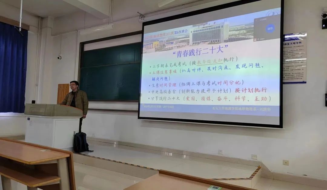 为全面落实立德树人根本任务,教育引导广大学生全面学习、全面把握、全面落实党的二十大精神,激励广大学生厚植家国情怀,自觉将“小我”融入“大我”,2023年2月21日-2023年3月14日,地测学院2022级各班组织召开了“青春践行党的二十大”主题班会,学院党委副书记潘迎、各班班主任、辅导员和班级全体成员参加了本次班会。