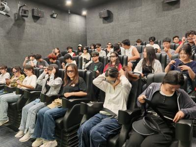 首先,讲解员先对陕西地理位置及灾害多发的特点进行介绍,强调学习防灾减灾知识的必要性。在讲解员的引导下,通过灾害知识科普、应急工具展示、观看3D主题影片等方式,加深同学们对灾害知识的理解。