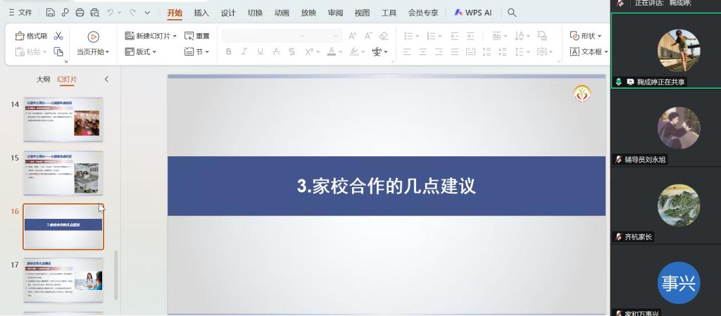 为加强家校沟通,共同关注学生成长与发展,地测学院于2025年6月5日通过腾讯会议平台召开了2024级本科生线上家长会。学校心理健康教育与咨询中心教师鞠成婷,2024级本科生辅导员刘永旭、阚红淼参加此次会议,会议由刘永旭主持。