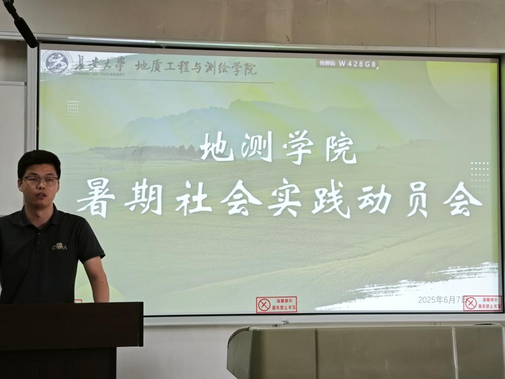 本次动员会标志着地测学院2025年暑期社会实践全面启动。这是地测学子践行社会责任、锤炼意志品质的重要平台,更是青年一代将个人理想融入国家发展大局的生动实践。后续学院将紧扣“学思用贯通、知信行统一”目标,引导青年学子在社会大课堂中“铸魂、增智、强能”,努力成长为堪当民族复兴重任的青年实干家,以实践之笔书写青春答卷。