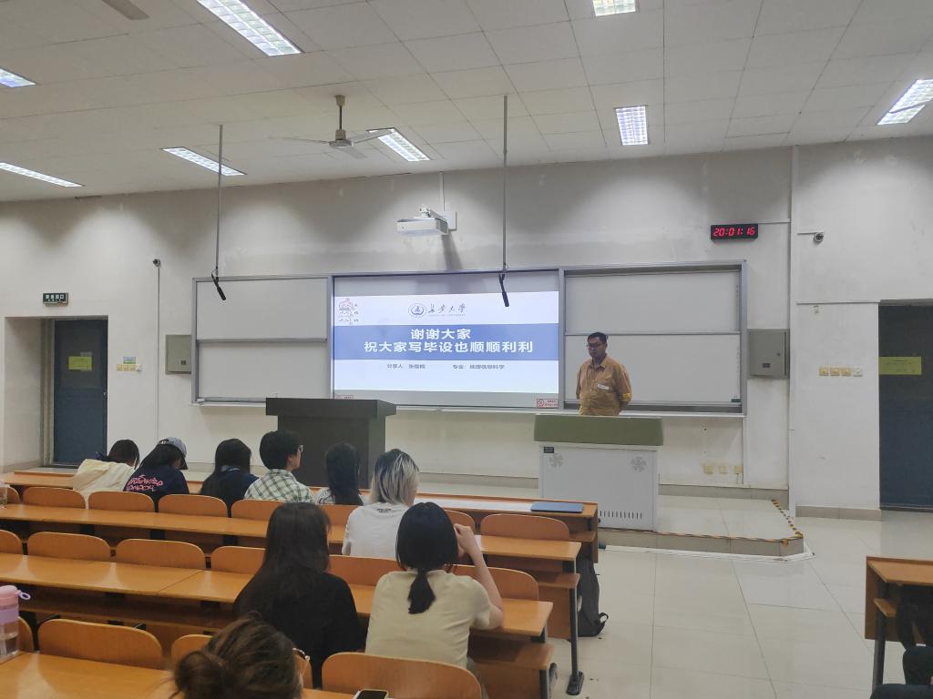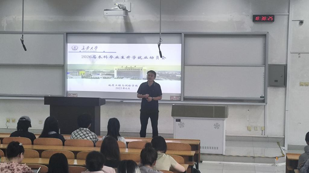 为深入贯彻落实学校人才培养和就业工作精神,帮助学生树立正确的择业、就业观,锚定职业发展方向,进一步提升我院2026届毕业生职业能力和就业核心竞争力,2025年6月10日晚19:00,地测学院测绘科学系于明远2201召开2026届毕业生升学就业指导专题教育会。测绘科学系副主任舒宝、测绘科学系教师丛铭、2022级辅导员陈子毅、2022级辅导员刘文星,2021级优秀学生代表以及2022级测绘工程、遥感科学与技术专业全体学生参加了本次会议。