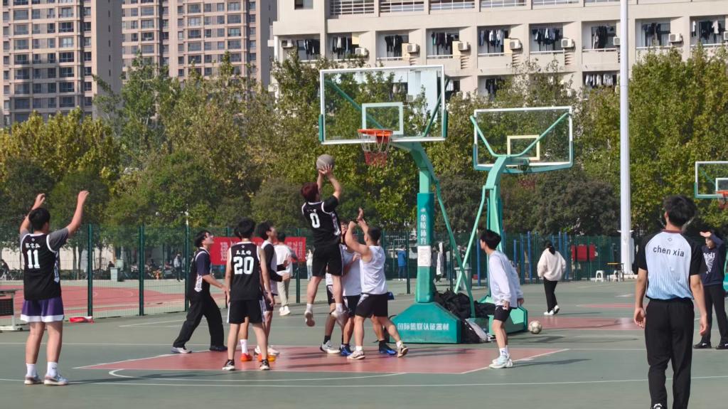 2025年10月30日中午,地测学院“新生杯”篮球赛总决赛于西区篮球场,正式开赛。本次比赛由703班与104班竞争冠军,102班与103班竞争季军。辅导员老师与各班同学到场观赛。