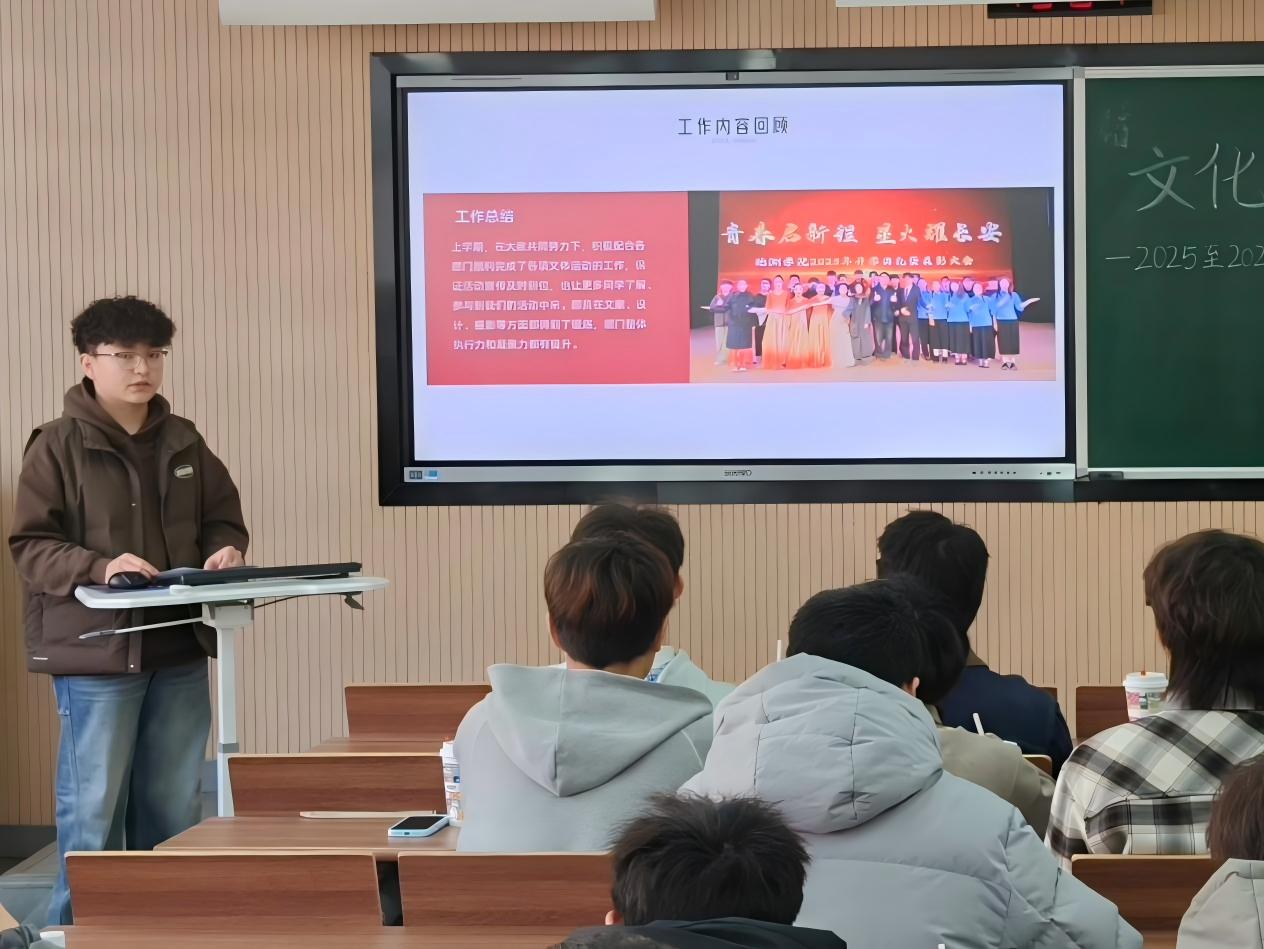 会议伊始,副主席肖昱昊带领大家回顾了上学期协会各项工作的开展情况,对取得的成绩与存在的不足进行了全面梳理。体育部、宣传部、文艺部在学院文体协会的统筹下,各司其职、协同配合,圆满完成了各项文体活动的组织、宣传与保障工作,同时也在实践中发现了不足。新学期,各部门也将针对问题逐一改进,以更认真的态度、更务实的行动,提升专业能力与工作效率,共同推动学院文体事业高质量发展。