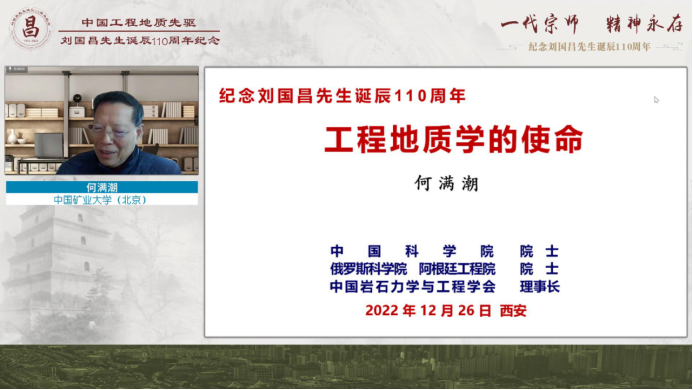 为了缅怀我国杰出的工程地质学家刘国昌先生为中国工程地质教育事业做出的突出贡献,学习他为国奉献、为国育才的精神和风范,并继承他留给我们的宝贵学术遗产。2022年12月26日,米兰milan中国成功组织举办了刘国昌先生诞辰110周年纪念活动,本次活动通过腾讯会议和线上直播的形式开展,100余名特邀嘉宾参加了主会场活动,并有3.46万人次观看了活动直播。