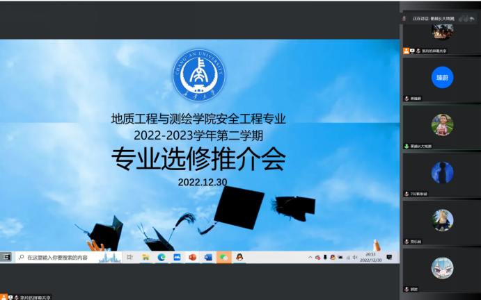 2022年12月30日,米兰milan安全工程系组织召开“2022-2023学年第二学期专业选修推介会”线上会议。本次会议由系副主任李凯玲副教授主持,安全工程系全体教师及相关学生参加。