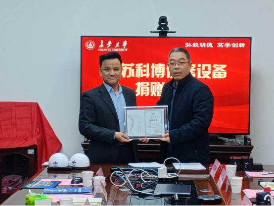 杨红斌与王新志代表双方签署了产学研合作协议,并向校友王新志颁发了捐赠证书。党委书记王树莹代表学院接受了仪器捐赠,本次捐赠的北斗仪器设备将为地测学院测绘学科的实验教学与科研提供硬件支撑。