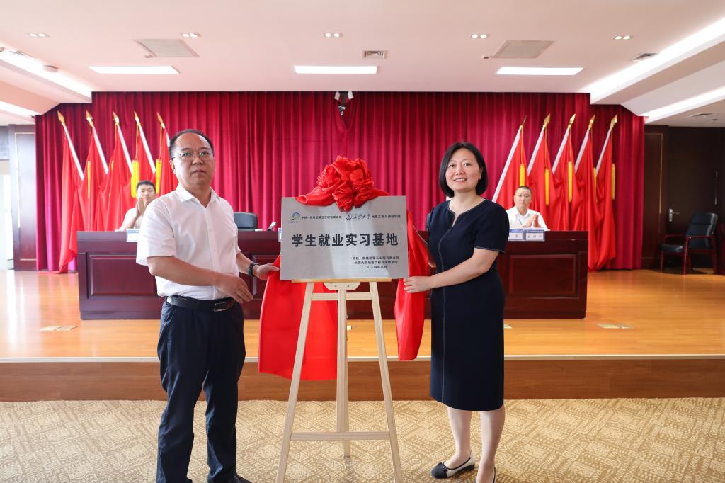开幕式结束后,地测学院党委书记王树莹与中铁一局总工程师王征为校企共建学生就业实习基地揭牌。本次揭牌对于在于深化产教融合,推动人才培养和产业发展具有重要意义,有助于校企双方共同发展、共同进步,实现双赢