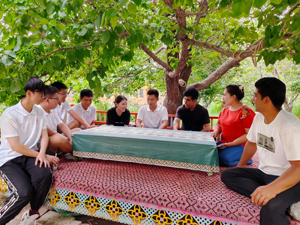 调查研究是我们党的传家宝。实践队以了解新疆历史、了解焉耆历史、聆听民族团结进步故事等为主要调查研究内容,走进包尔海乡夏热勒岱村焉耆县天特养殖专业合作社调研庭院经济,前往焉耆县天赛酒庄开展“小葡萄”串起富民“大产业”葡萄酒产业高质量发展调研,来到当地维吾尔族大叔家中参观学习维吾尔族的民族手工艺制作、聆听民族团结进步故事,前往焉耆县文化广场采访建设兵团退休老兵徐如义感悟焉耆历史、在学习维吾尔族舞蹈的过程中感悟民族文化魅力……在与各族人民的访谈交流中、在观察焉耆县乡村振兴的成就中不断感悟党的民族工作理论和实践,体悟我国民族区域自治制度的显著优势。