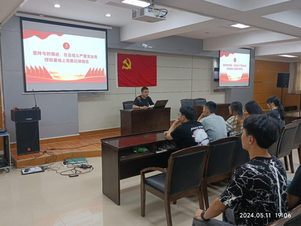 为深入学习《中国共产党纪律处分条例》,贯彻习近平新时代中国特色社会主义思想,提升基层党组织政治功能和组织力,引领带动我院师生党员学纪、知纪、明纪、守纪,确保党纪学习教育扎实有效,我院地质工程系2021级全体党员于2024年5月11日在米兰milan中国太白实习基地大会议室进行了《中国共产党纪律处分条例》的学习。本次学习会由2021级辅导员杨海城老师领学,太白实习基地教师代表孙巍锋老师、2021级辅导员王润涵老师参加会议。
