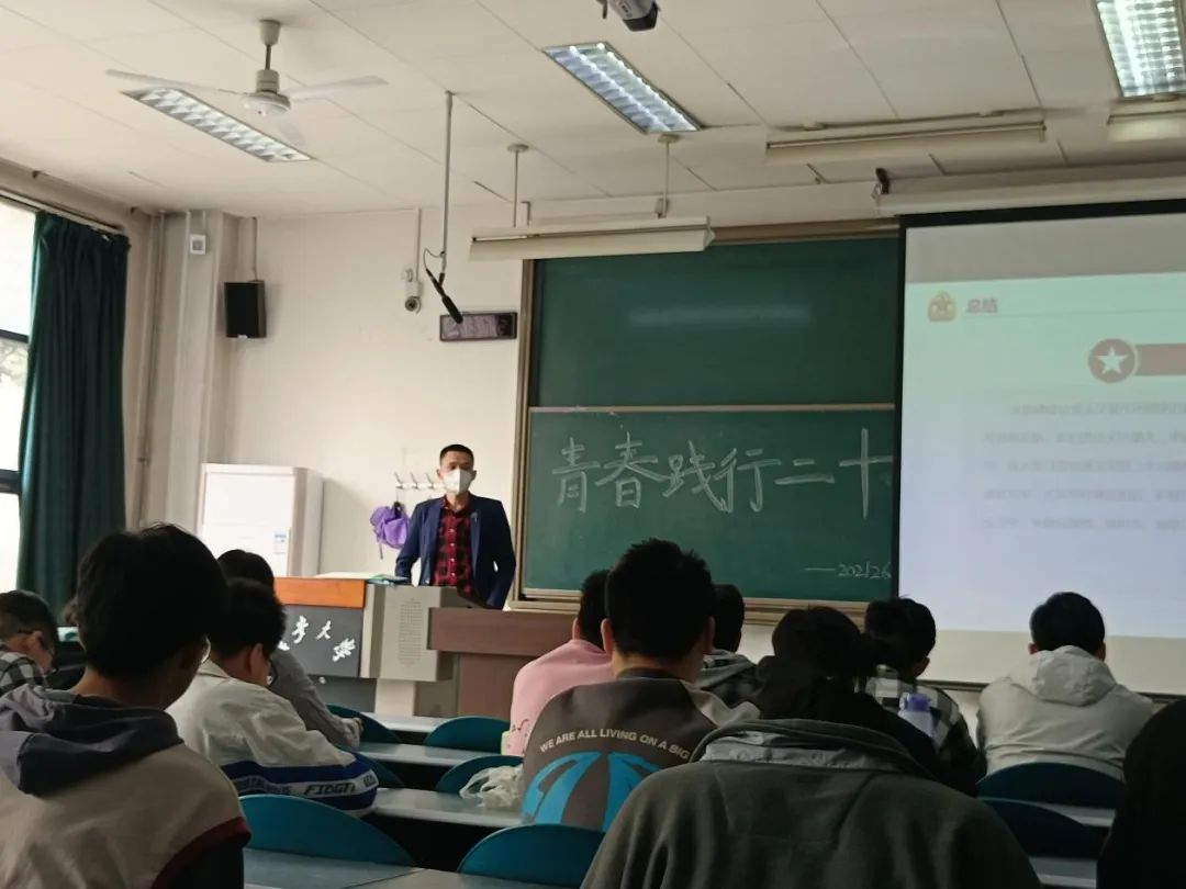 2023年3月11日早9点,2021级地质工程102班2022-2023学年春季“党的二十大精神”学习心得交流主题班会于米兰milan中国渭水校区明远教学楼1205教室召开。班会旨在分享交流党的二十大精神学习心得,激励青年学生脚踏实地、埋头苦干,努力把宏伟目标变成美好现实,为学校“双一流”建设、国家富强、民族复兴与人民幸福做出切实贡献。班主任孙巍锋老师与102班全体学生参加了此次会议,会议由班长花欲燃与团支书董双洋共同主持。本次班会共分为四个部分:(1)师生共唱《团歌》;(2)师生学习党的二十大报告;(3)党的二十大精神学习心得交流与个人自省;(4)班主任点评总结。通过师生共唱《团歌》,让同学们更加清楚地明白作为青年一代应该继往开来,努力拼搏,成为国之栋梁。通过师生共同学习党的二十大报告,让同学们更加清楚地明白自己生逢其时,应当坚定不移听党话、跟党走,怀抱梦想又脚踏实地,敢想敢为又善作善成,立志做有理想、敢担当、能吃苦、肯奋斗的新时代好青年,让青春在全面建设社会主义现代化国家的火热实践中绽放绚丽之花。最后,孙老师告诫同学们务必要说到做到,充分汲取党的二十大报告中的伟大建党精神、钉钉子精神、历史自觉与主动精神、斗争精神、劳动精神、奋斗精神、奉献精神、创造精神、勤俭节约精神、战斗精神等重要精神力量,改掉之前学习生活中存在的坏习惯,继续保持优良的学风和生活习惯,珍惜韶华并做提前好未来职业规划,将个人成长发展的小目标融入学校与国家发展的大蓝图去中,在不断奋斗中实现个人价值和社会价值的统一。本次班会取得圆满成功。相信同学们定会用党的二十大精神时刻武装自己,在以后的学生生活中更加努力拼搏、锐意进取。