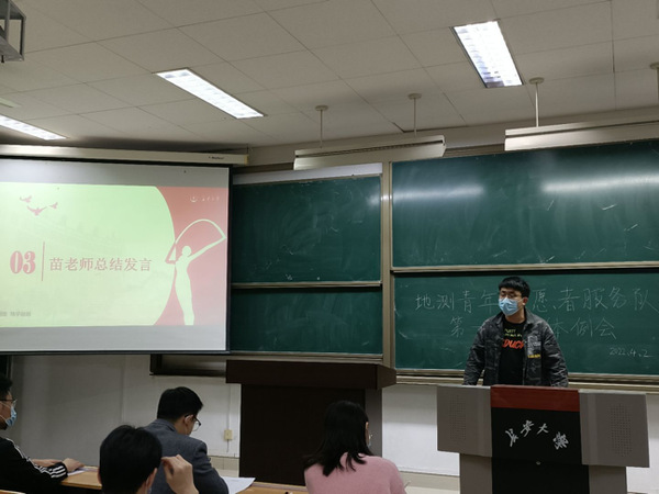 出席本次例会有:地测学院团委书记、地测学院青志队指导教师苗行生老师,青年志愿者服务队主席盛恺,副主席徐子惠,各部门部长及全体部门志愿者。本次会议由徐子惠主持。