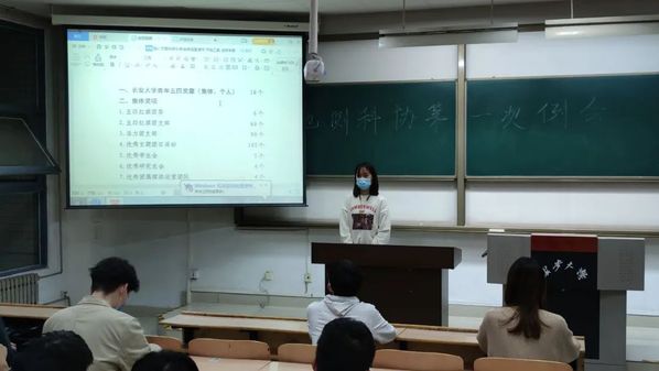 随后是科协主席郑苏雅发言。郑苏雅先对五四评优作了讲解,详细地介绍了集体奖项、个人奖项的评选标准,评选过程以及相关的注意事项,鼓励符合条件的同学积极申报。
