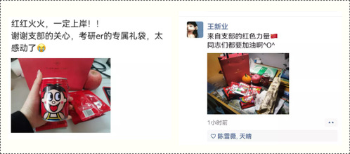 考研学子王新业说:“今年的冬天虽然寒冷,但是却收获了一份专属温暖。在最后的冲刺阶段,支部的祝福和关怀也让我动力十足。”小小福袋饱含了对考研学子的深情祝福,希望他们以坚定的信心、充沛的精力和更饱满的热情投入到复习和即将到来的考试中去,一“研”为定,定为研一!