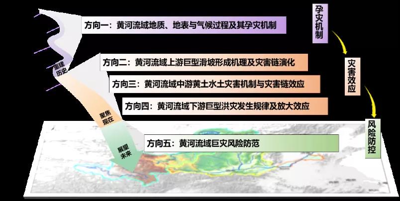 黄河流域地质构造活跃、地貌演化迅速、气候区域分异显著,流域重大灾害破坏黄河流域生态环境,影响流域地质与生态安全。文章提出了黄河流域地质地表过程与重大灾害效应研究的主要方向为:黄河流域地质、地表和气候过程及其联动孕灾机制,黄河流域上游巨型滑坡形成机理及灾害链演化,黄河流域中游黄土地区水土灾害机制与灾害链生效应,黄河流域下游巨型洪灾发生规律及链生放大效应,黄河流域重大灾害风险防范。并建议以地球系统科学理论为指导,从“重建历史—聚焦现代—展望未来”的时间轴尺度揭示黄河流域地质、地表与气候联动孕灾机制,从“地—域—河”的空间轴尺度阐明黄河流域重大灾害区域模式、动力学机制、灾害链生与生态互馈效应,从“人地协调观”角度建立黄河流域综合风险评估模型与防控理论,形成“全流域覆盖、分区分带管控”应用示范格局,保障流域生态地质安全,为黄河流域生态保护和高质量发展提供科学参考。