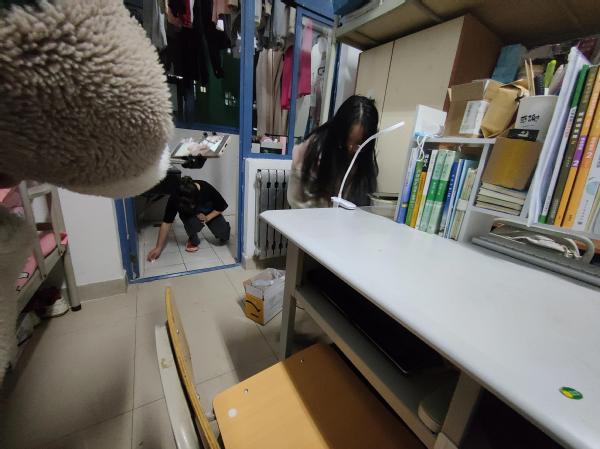 在宿舍内务指导的过程中,学长学姐们着重为同学们讲解了在宿舍卫生安全中需要注意的问题,比如:合理使用挂钩、置物架等小物品可以极大提高空间利用率;牙具的摆放要远离洗手盆,避免洗手时污水溅入;宿舍用电器在无人时要断电,特别是饮水机在水桶清空时要及时关闭,避免“干烧”。同时,也叮嘱同学们要深入落实学院疫情防控工作常态化要求,按时开窗通风、倒垃圾,保持宿舍的整洁和卫生,养成良好的生活习惯。2021级同学们则在学长学姐们的指导下对自己的宿舍进行了即时的内务整理。
