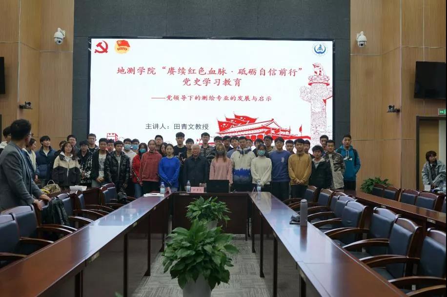 11月26日,地测学院邀请退休教师田青文教授为学院测绘科学系全体青马班学生、测绘科学系学生党支部学生和毕业班学生代表作了“赓续红色血脉•砥砺自信前行”为主题的党史学习教育专题讲座,结合自身经历向同学们介绍了党领导下的测绘专业的发展与启示。地测学院团委书记苗行生、团委副书记杨雪菲参加了此次讲座。此次讲座由苗行生主持。