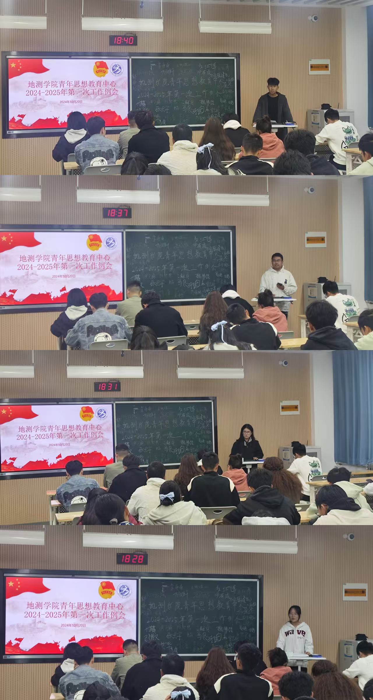 为加强组织内部建设,明确工作职责与目标,提升学生干部的综合素养,地测学院青年思想教育中心于10月20日晚在WX2310召开2024-2025学年首次工作会议。学院团委书记杨东民到场指导,青年思想教育中心全体成员参加,此次会议由青思主任方孜轩主持。