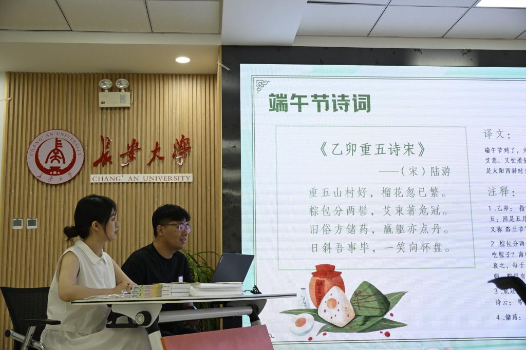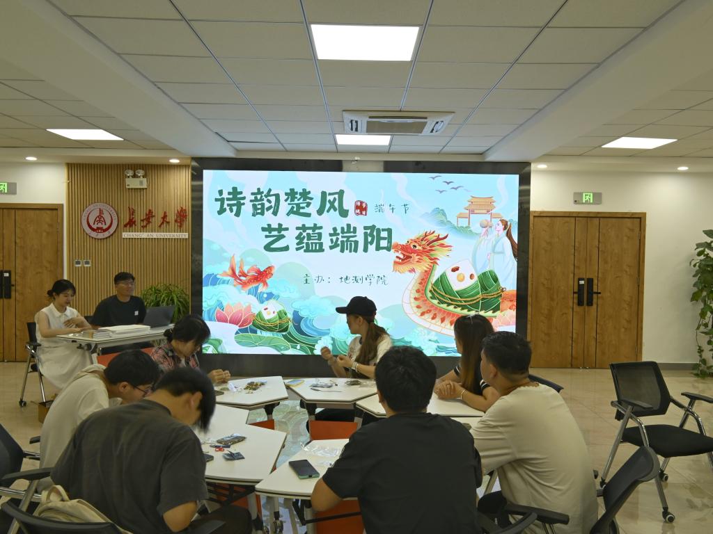 为深入学习贯彻习近平文化思想,迎接端午佳节,感受非遗魅力,5月30日,地测学院于朝晖园团体活动室举办了“星辰下的石榴红”系列活动,文脉传承,合和共生——“诗韵楚风,艺蕴端阳”中华传统文化教育活动。2023级辅导员史杨季、2021级辅导员王润涵主持本次活动。
