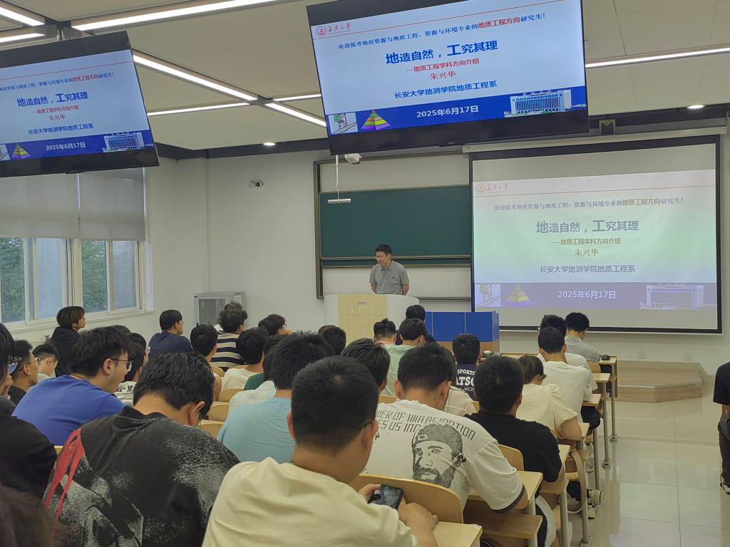 为深入贯彻落实学校人才培养与就业工作精神,引导学生树立正确择业观与就业观,切实提升我院2026届毕业生的职业能力与就业核心竞争力。2025年6月17日晚19时,地测学院地质工程系在米兰milan中国渭水校区WH1306开展就业指导专题教育。本次会议由2022级辅导员陈子毅主持,地质工程系主任朱兴华、副主任熊炜、副主任安鹏及2022级地质工程系全体学生参加本次交流会。