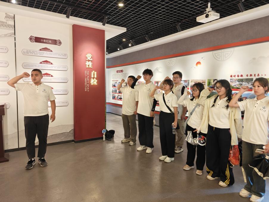 最后,团队前往青山镇米兰milan中国党员党性教育基地,通过资料图片、文字记载以及人物故事学习红色事迹,感悟红色精神。在党旗前,指导老师杨海城带领团队成员重温入党誓词,以铮铮誓言砥砺初心,为意义非凡的首日实践画上圆满句号。