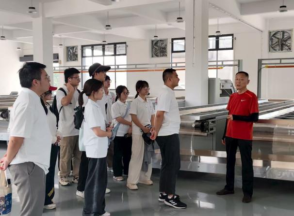 实践队首站来到双山茶叶加工厂房,在陈洪涛的带领下深入了解茶叶生产全流程。厂房的现代化仪器阵列整齐,从新鲜茶叶的杀青、揉捻到烘干、筛选,各环节均由机器精准完成,只需几名技术人员实时掌控,便可实现茶叶的高效生产。经实地观察与讲解,实践队成员了解到传统茶叶产业向现代化、智能化转型的路径,深刻体会到科技赋能对提效保质的关键作用。