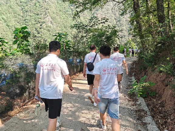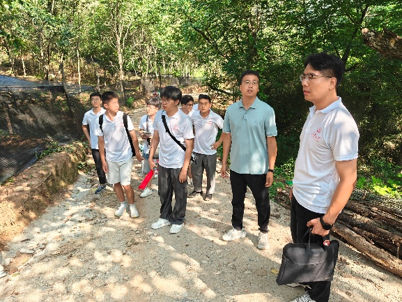 在玉皇庙镇玉皇庙村,实践队实地考察了森林生态修复项目。这一环节紧密呼应了“生态与地质融合调研”和“地质安全生态保护支撑”的目标。队员们直观了解退化林地的修复技术(如树种选择、抚育管理)、修复成效及其对涵养水源、保持水土、提升生物多样性的重要作用。认识生态修复是产业发展的前置条件和生态安全屏障,修复后的林地为发展林下种植等绿色产业提供了空间和生态保障。地质赋能组队员特别关注了修复区域的地质稳定性、水土保持措施的效果等,思考地质条件如何支撑或约束后续的生态产业开发,为形成“地质安全对生态产业的支撑边界”建议积累实地认知。