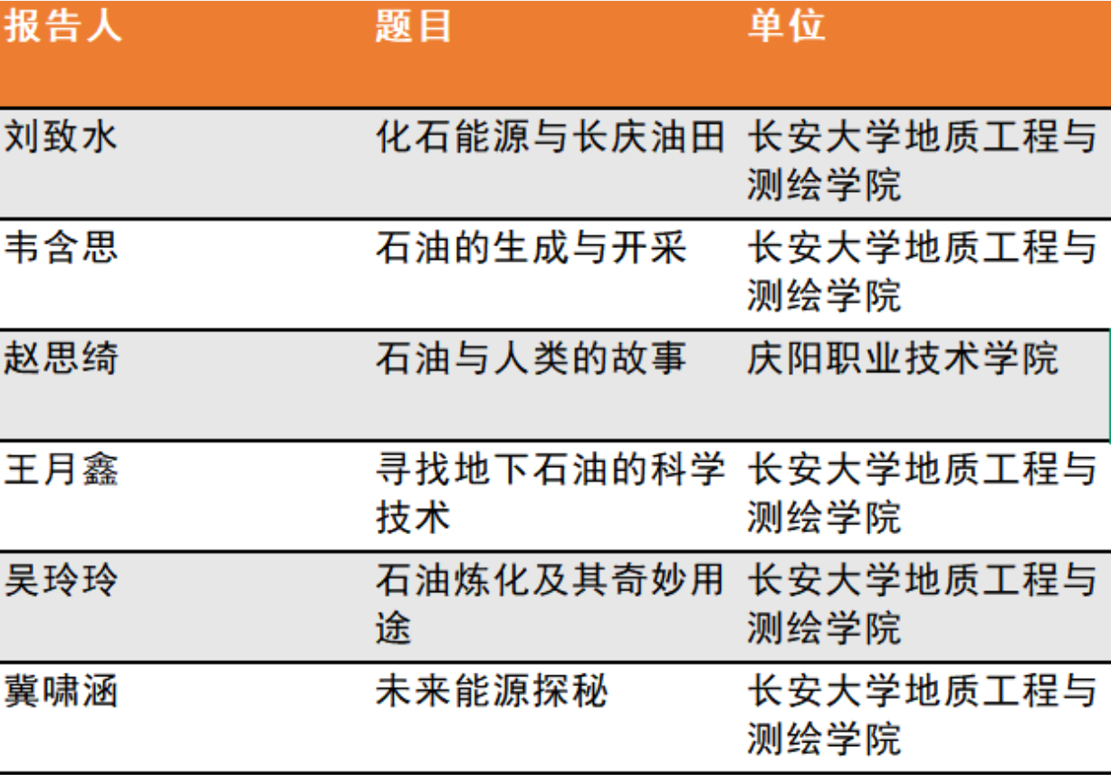 我校师生参加科普讲座内容列表
