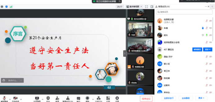6月14日上午,地测学院安全生产专题培训以线上加线下的形式展开,全院教职工和学生参加,并邀请了党建帮扶的商南县二郎庙村参加在线联学。