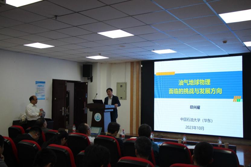 2023年10月10日上午,中国石油大学(华东)印兴耀教授受邀为地测学院师生做了题为“油气地球物理面临的挑战与发展方向”的学术报告。本次学术交流活动持续了两个半小时。报告会由地测学院地球物理系系主任包乾宗副教授主持。中国石油大学(华东)地球科学与技术学院副院长宗兆云教授、地球物理系主任曹丹平教授、中国科学院地质与地球物理研究所薛国强研究员、中煤科工集团西安研究院(集团)有限公司科技创新研究院副院长王云宏副研究员、我院李貅教授、王万银教授、副院长邵广周教授及地球物理专业等六十余位师生参加。