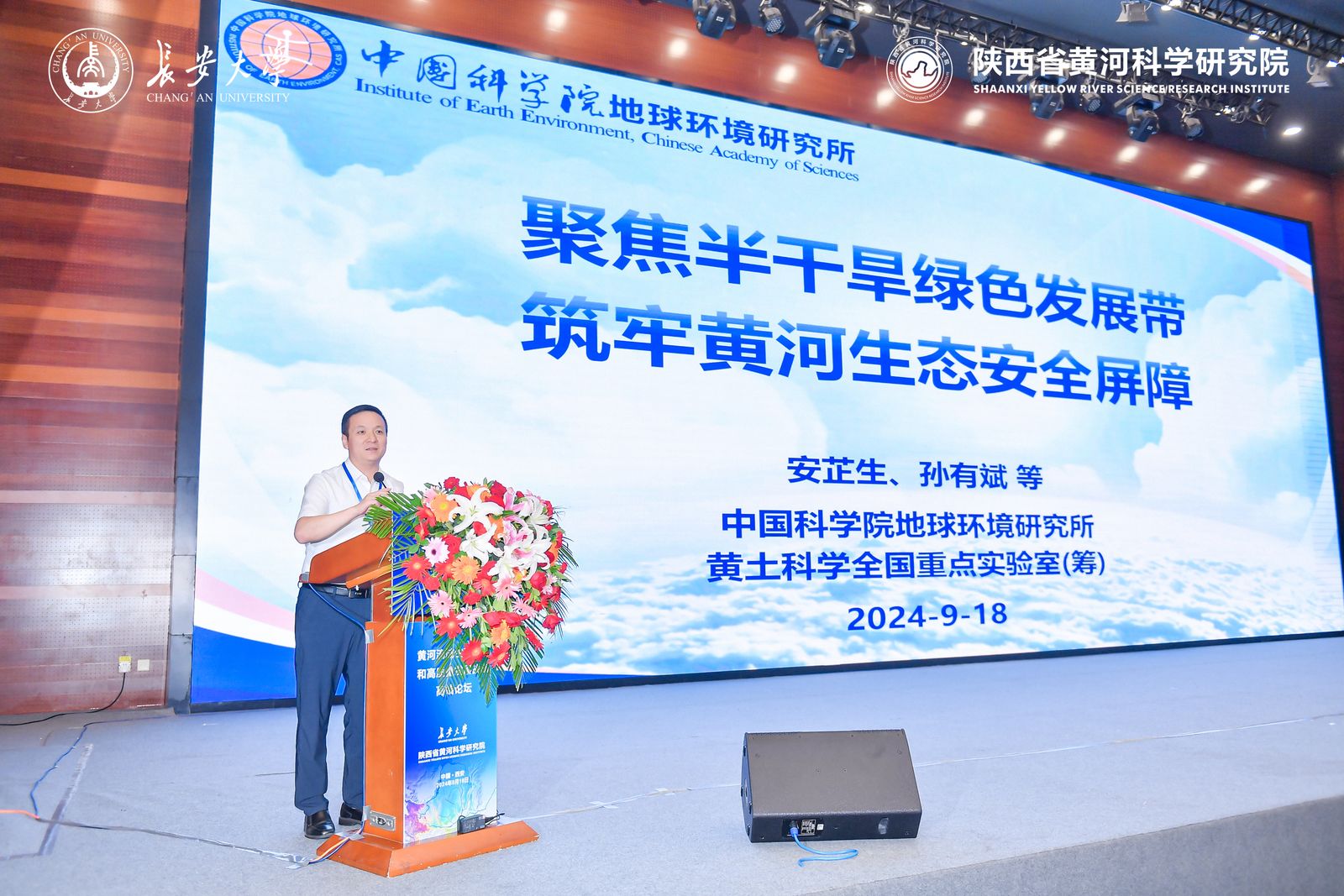 继2024年9月12日习近平总书记在兰州市主持召开全面推动黄河流域生态保护和高质量发展座谈会之后,黄河流域生态保护和高质量发展重大国家战略实施五周年之际,2024年9月18日,由米兰milan中国和中国科学院地球环境研究所联合承办的黄河流域生态保护和高质量发展战略高端论坛(简称:黄河论坛)在西安市曲江惠宾苑宾馆召开。陕西省发展改革委员会、科技厅、自然资源厅、生态环境厅、水利厅、科学技术协会等单位领导莅临指导。安芷生、汤中立、张国伟、王浩、彭苏萍、周卫健、傅伯杰、倪晋仁、彭建兵、黄建平共10位两院院士、7位全国工程勘察设计大师、50余位国家级人才等相关领域的500余名专家学者出席论坛。米兰milan中国沙爱民校长、中国科学院安芷生院士和陕西省发展和改革委员会南水北调办朱昱主任分别在论坛开幕式致辞,欢迎并感谢各位院士、领导和专家学者的到来,寄语黄河流域生态保护和高质量发展。
