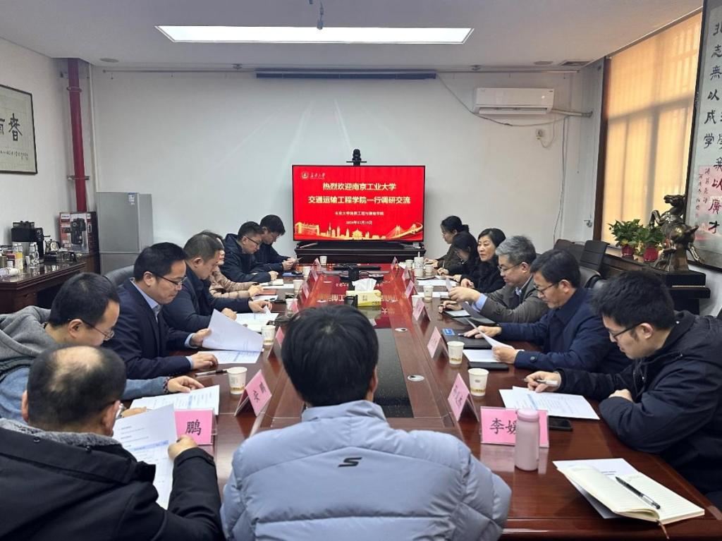 2024年12月10日下午,南京工业大学交通运输工程学院党委书记许翠梅、院长周峰、副院长吴志坚及地质工程系、实验管理中心相关负责人来院调研,米兰milan党委书记王树莹,党委副书记、副院长欧阳韬,副院长申艳军及地质工程系、实验中心相关负责人参与调研。申艳军副院长主持调研交流会。