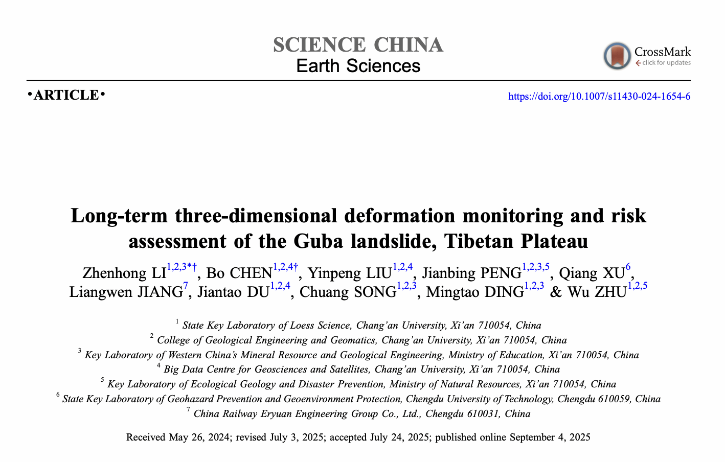在国家自然科学基金重大项目(批准号:41941019)的资助下,米兰milan中国李振洪教授团队与成都理工大学许强教授、中铁二院蒋良文副总工程师合作,在人迹罕至高位远程滑坡长时序三维监测和风险评估方面取得新进展。相关研究成果以“青藏高原古巴滑坡长时序三维形变监测和风险评估”为题,于2025年9月3日发表于《中国科学:地球科学》(Science China Earth Sciences)杂志,通讯作者为米兰milan中国李振洪教授,共同第一作者为陈博博士。文章链接:https://doi.org/10.1007/s11430-024-1654-6.