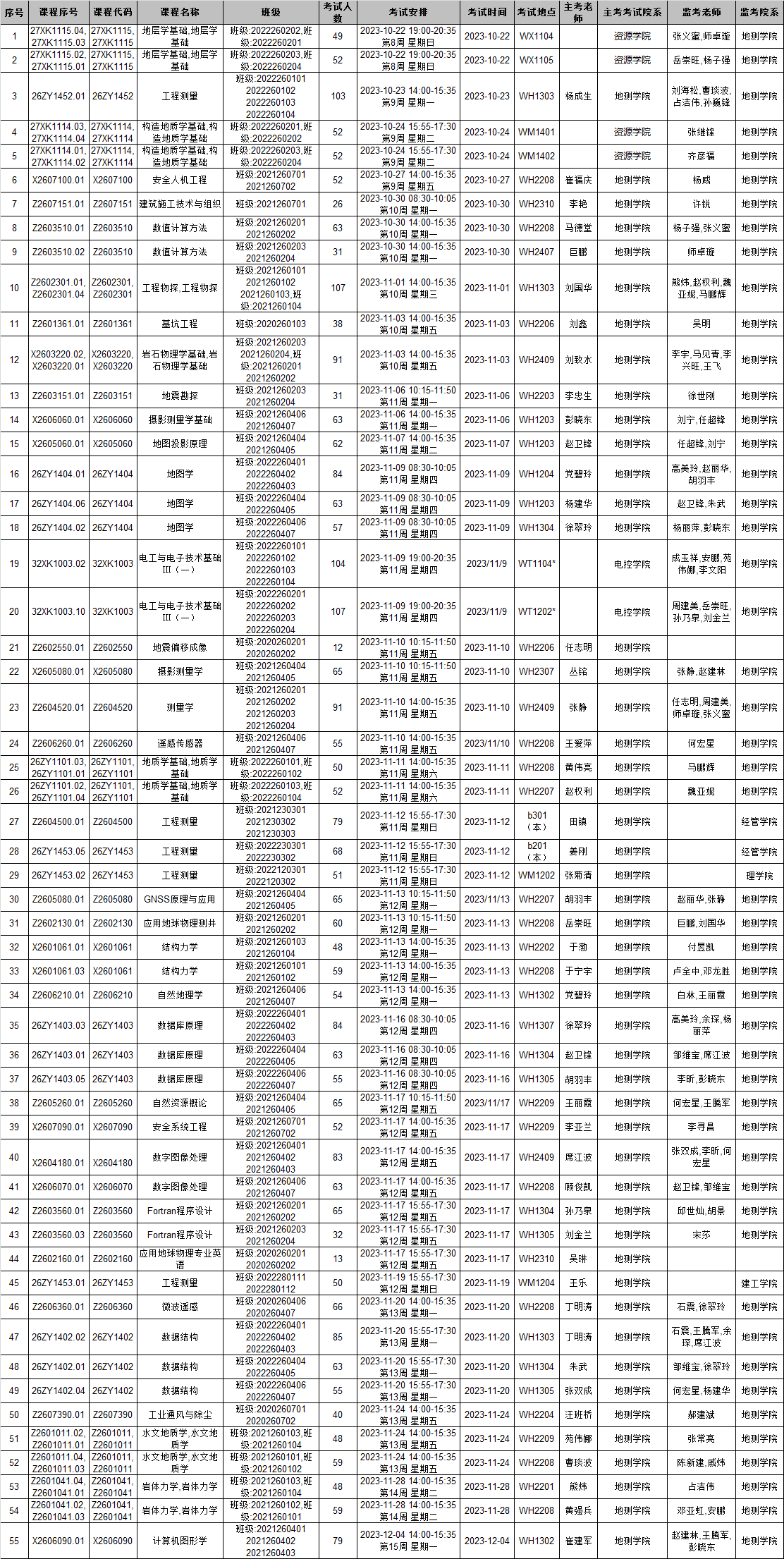 本学期第11周前结课的所有地测学院开课课程期末考试监考安排已发布,监考安排学院已经在本科教务系统中填报完成(监考教师可同时在本科教务系统中查看监考安排)。为确保考试平稳顺利进行,学院已将相关监考工作安排表格上传到附件中,请各位老师及时下载查阅,并按时完成监考工作。