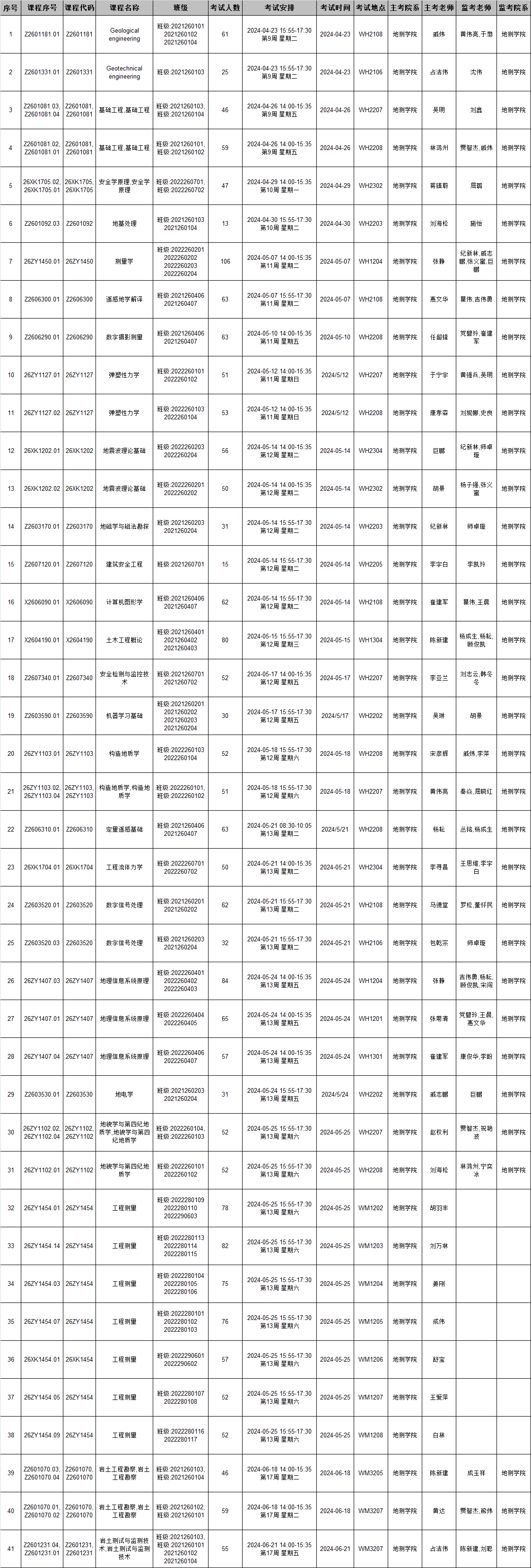 本学期第10周前结课的所有地测学院开课课程期末考试监考安排已发布,监考安排学院已经在本科教务系统中填报完成(监考教师可同时在本科教务系统中查看监考安排)。为确保考试平稳顺利进行,学院已将相关监考工作安排表格上传到附件中,请各位老师及时下载查阅,并按时完成监考工作。