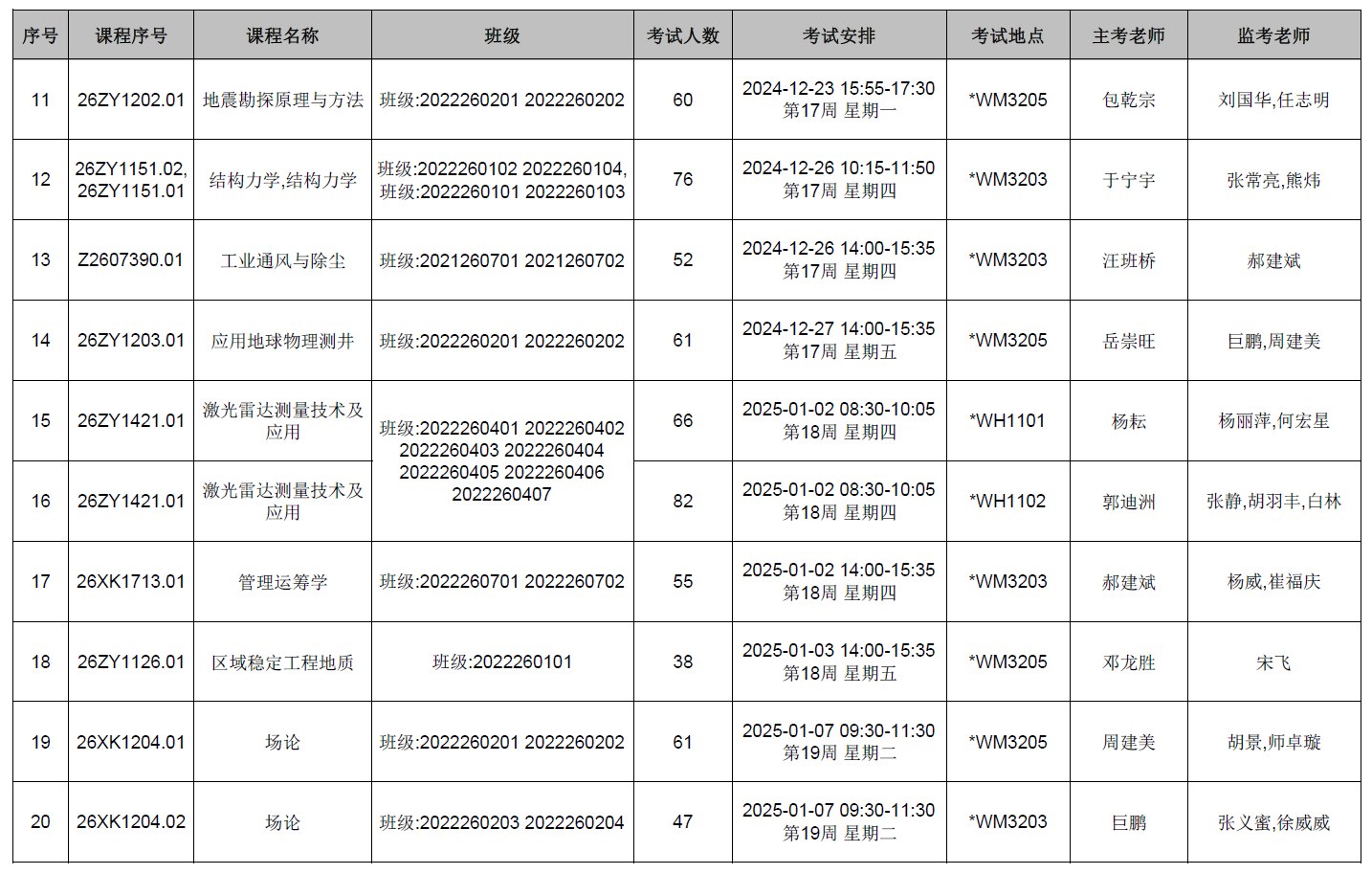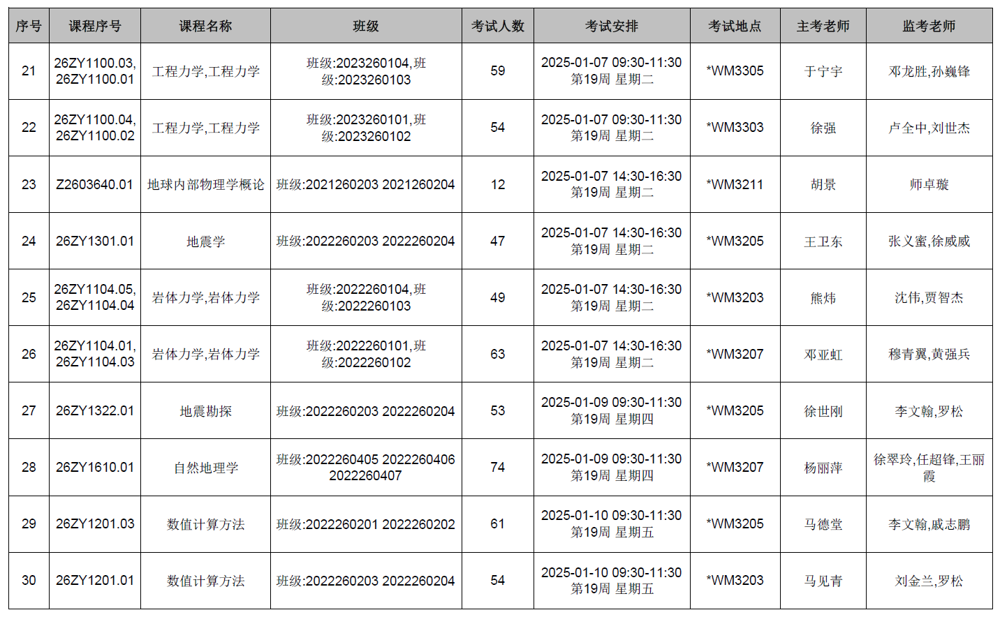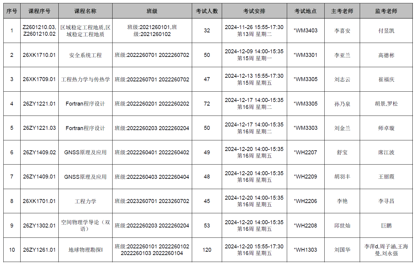 上一条:地测学院2024年秋季研究生学位论文集中答辩公示(四) 下一条:【24-25-1学期监考安排(本科)②】第10周前结课的地测学院开课课程期末考试监考安排
