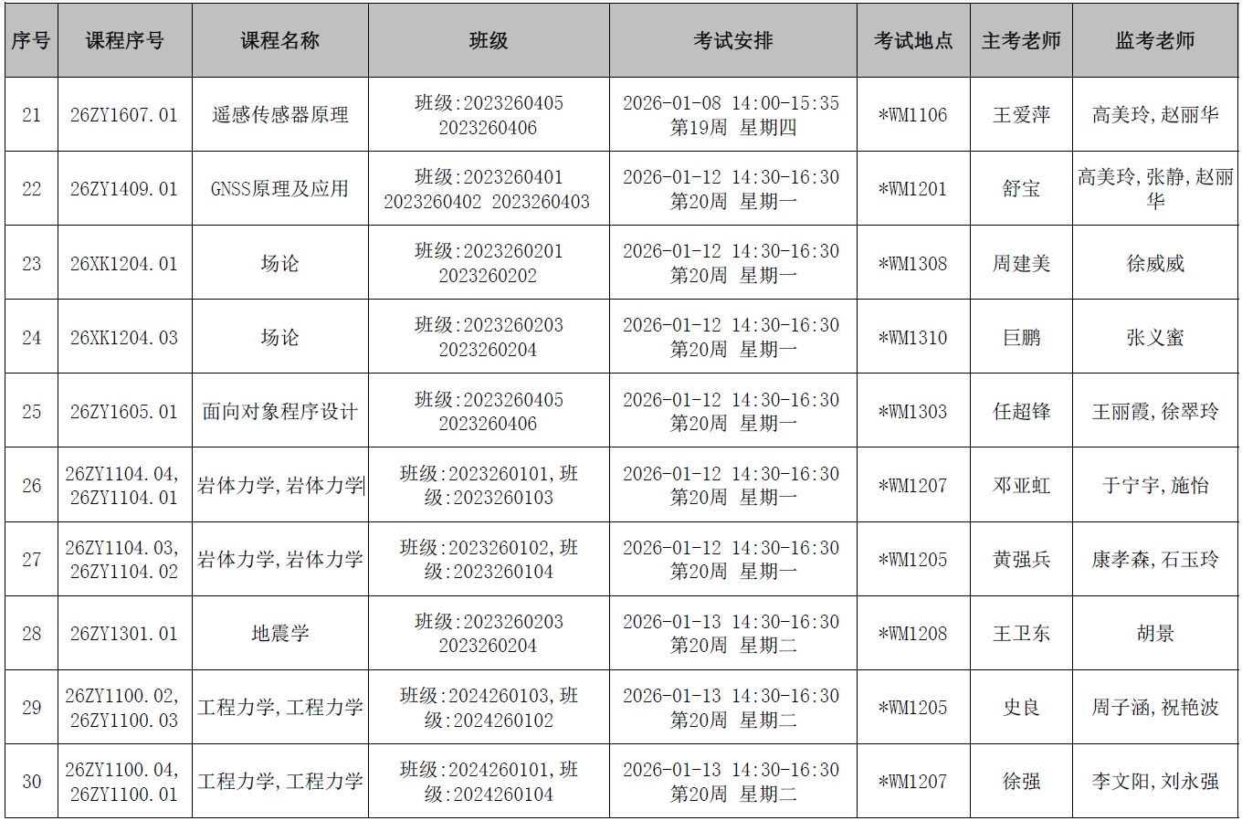 本学期第11周后结课的地测学院开课课程期末考试监考安排已发布,监考安排学院已经在本科教务系统中填报完成(监考教师可同时在本科教务系统中查看监考安排)。为确保考试平稳顺利进行,学院已将相关监考工作安排表上传到附件中,请各位老师及时下载查阅,并按时完成监考工作。